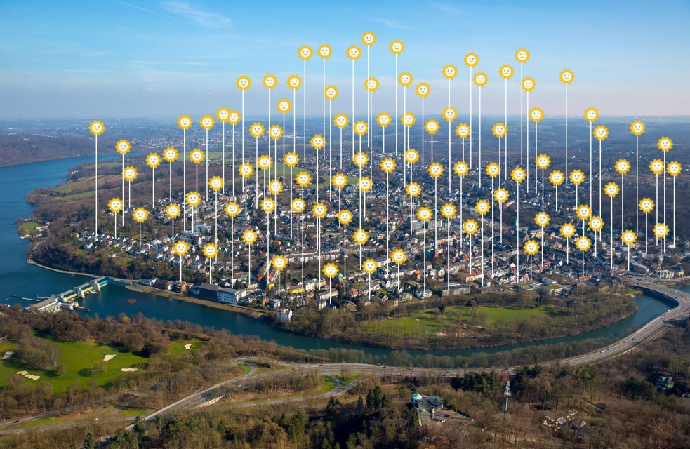2023 war bundesweit ein Boomjahr für installierte Solaranlagen v.a. im PV-Bereich. Auch im PLZ-Gebiet 45239 hat es einen starken Zuwachs an Photovoltaikanlagen gegeben. Waren Anfang letzten Jahres 353 PV-Anlagen mit einer Leistung von 4.500 kWp in Betrieb bzw. im Bau so waren es bis Ende 2023 schon 449 Anlagen mit über 5.500 kWp Leistung. Entsprechend lassen wir wieder ganz viele neue Sonnen symbolisch über Werden aufgehen. 100 Anlagen pro Jahr ist zwar noch nicht der schnelle Wandel, den es braucht, aber das Thema nimmt erfreulich Fahrt auf und wir rechnen für 2024 mit einem absoluten Rekordjahr.
